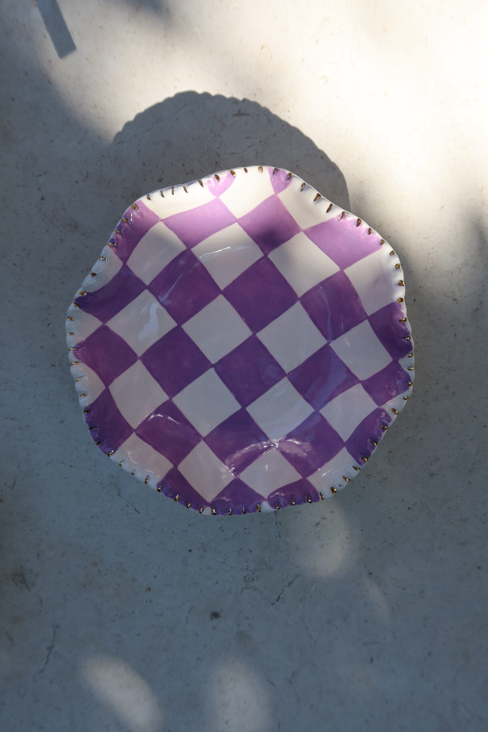 Inteiramente pintada á mão em lilás e filetada em ouro, quem dá o nome a essa peça é você!