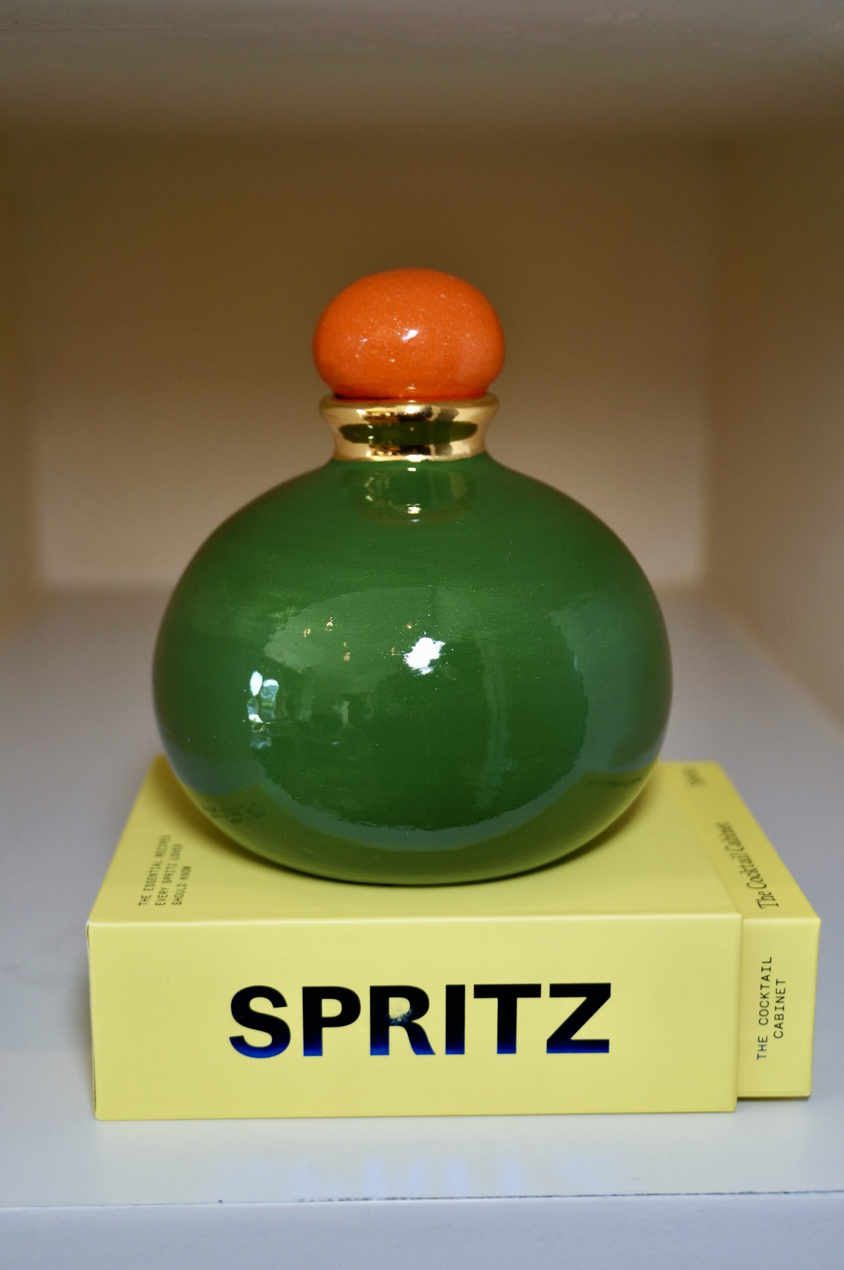Vaso bojudinho com tampa removível para utilizar como decor ou para servir agua. Com sua forma arredondada e pescoço inteiramente torneado em ouro, it’s a must!
