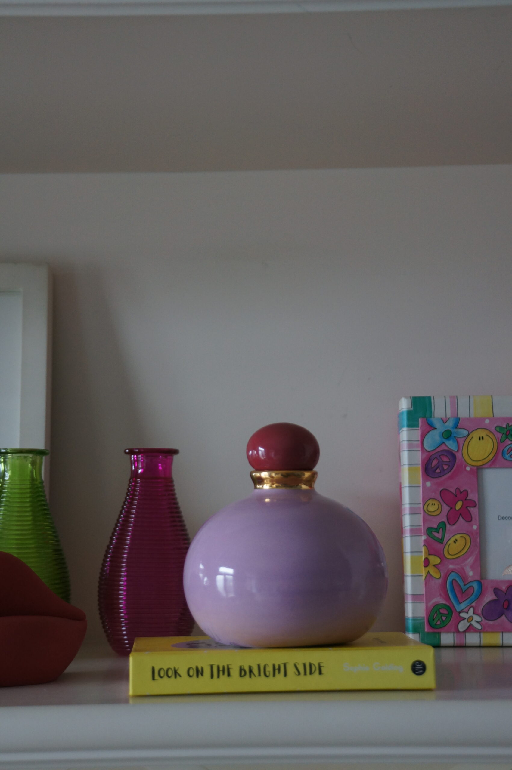 Vaso bojudinho com tampa removível para utilizar como decor ou para servir agua. Com sua forma arredondada e pescoço inteiramente torneado em ouro, it’s a must!